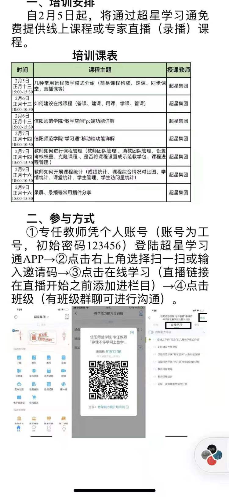 立“信阳师院网络教学空间”交流群,对老师软件使用过程中的一些技术问题,进行实时在线答疑。公司成立专门的信息群,及时通报相关情况,推进网络教学的进度。员工方面,为了方便沟通,郝老师在学习通软件之外建立了“教师-员工班”QQ群,从多个方面确保了教师员工沟通无障碍。