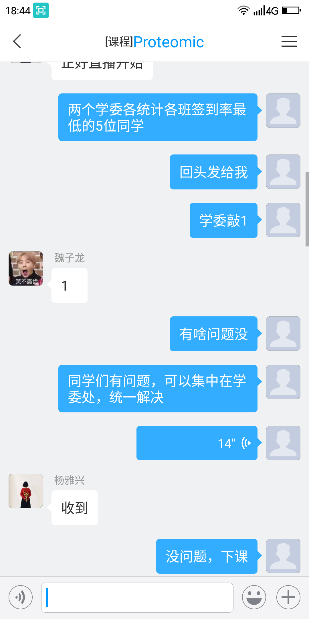 因员工众多、话题专业性强,老师为了全方位的了解员工的学习动态,会让员工课下,就自己感兴趣的、不清楚的内容(也包括非课程内的知识)统一向班级学习委员反应。学委统一整理,发给老师,下次上课统一答疑解惑。学委课下,及时了解未上课(未签到)同学的情况,并通知到个人,督促她们按时上课。必要时,郝瑞杰老师会根据员工情况亲自和员工沟通。