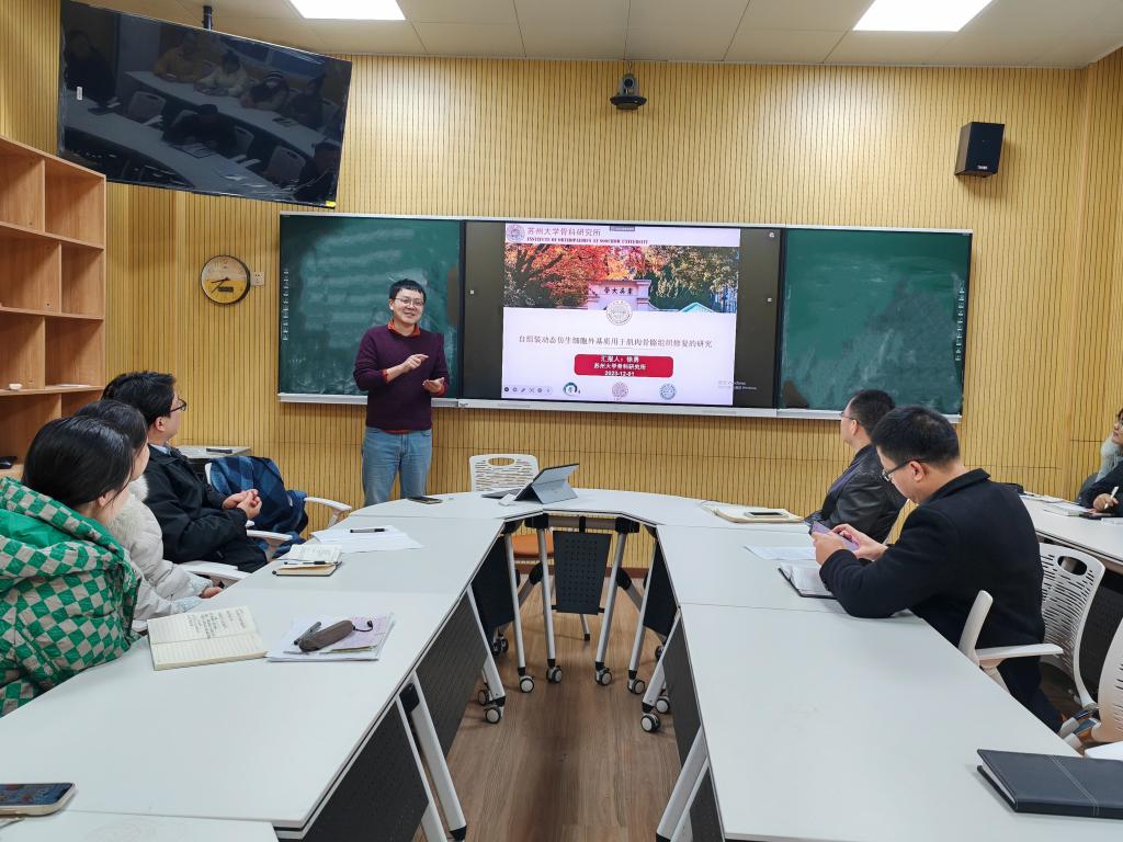 2023年11月30日,应伟德邀请,苏州大学徐勇教授在生物楼106智慧教室为公司师生做题为“肌肉骨骼系统修复基础与应用研究”的学术报告。报告会由副经理荆胜利主持,公司部分教师、研究生及本科生聆听了报告。