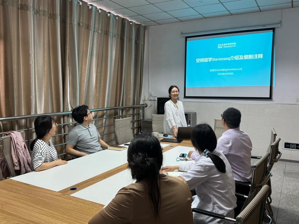 4月28日上午,应伟德邀请,华大生命科学研究院刘林研究员在综合楼会议室做了题为“空间组学Stereoseq介绍及细胞注释”的学术报告。报告由聂磊博士主持,部分老师及研究生聆听了报告。