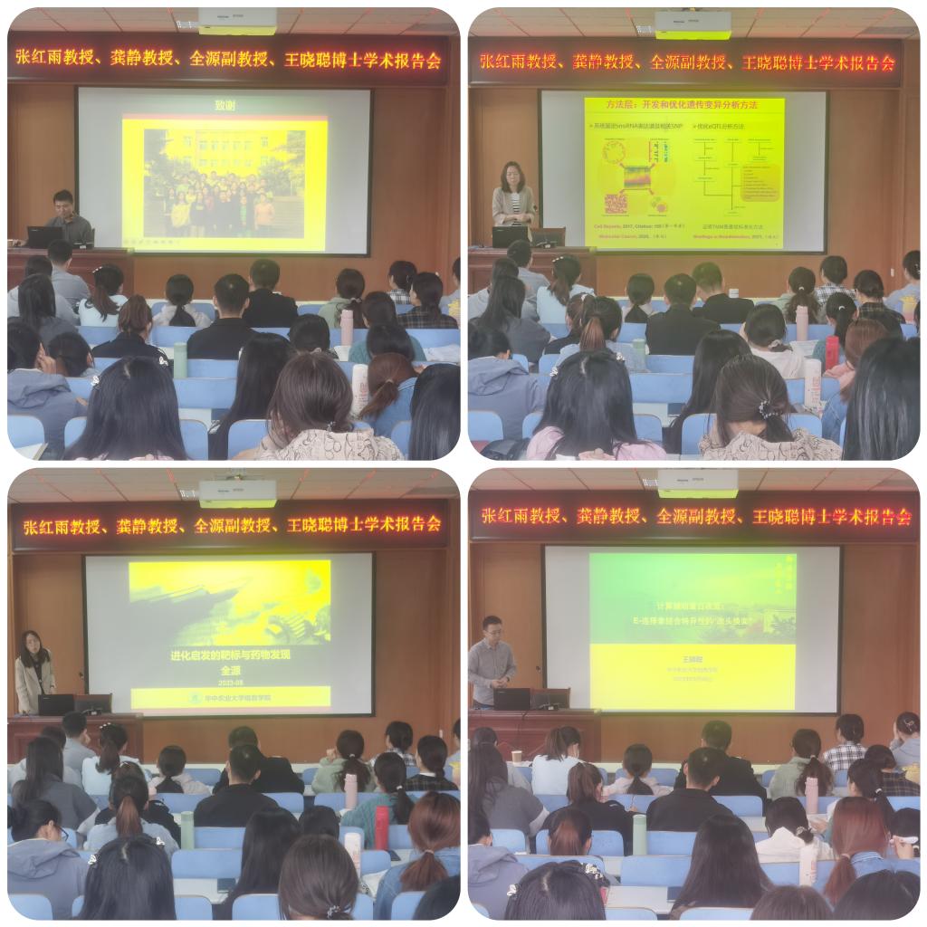 5月6日,应伟德邀请,华中农业大学信息公司经理张红雨教授以及龚静教授、全源副教授、王晓聪博士在生物楼钟秀讲堂为师生做学术报告,生科院部分教师及员工140余人聆听了报告会。报告会由该院经理饶本强教授主持。