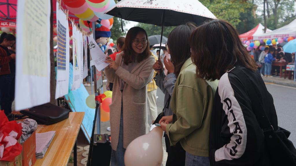 为增进学子间沟通交流,帮助新生尽快适应大学,以积极阳光的心态投入学习、生活中。10月22日下午,由公司学工部老员工心理健康教育中心主办、公司员工会心理部承办的心理游园活动在思齐路顺利开展,吸引众多学子前来参加。