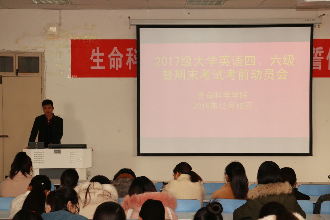 12月9日至12月12日,公司2017级各班级相继于生物楼414多媒体教室召开英语四、六级暨期末考试考前动员会。专职辅导员孙太红、朱晓雯出席现场并主持班会。