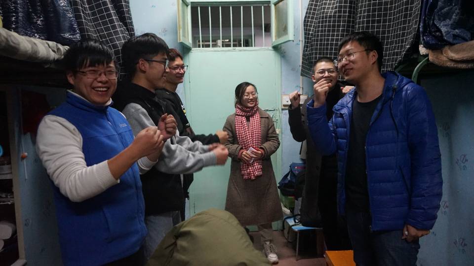 临近考试,为增强2017级学子们对于英语四六级的信心,12月11日晚公司2017级专职辅导员朱晓雯走访员工宿舍。