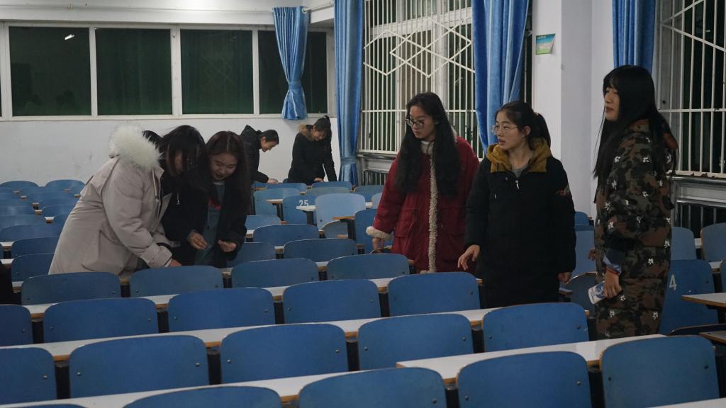 为营造良好的考试氛围,积极响应建设诚信文明校园的号召。12月27日,公司团委员工会成员在员工会团委副书记王兆迎,团委员工会主席王勐等员工干部的带领下,于教九楼进行考前教室清扫活动。