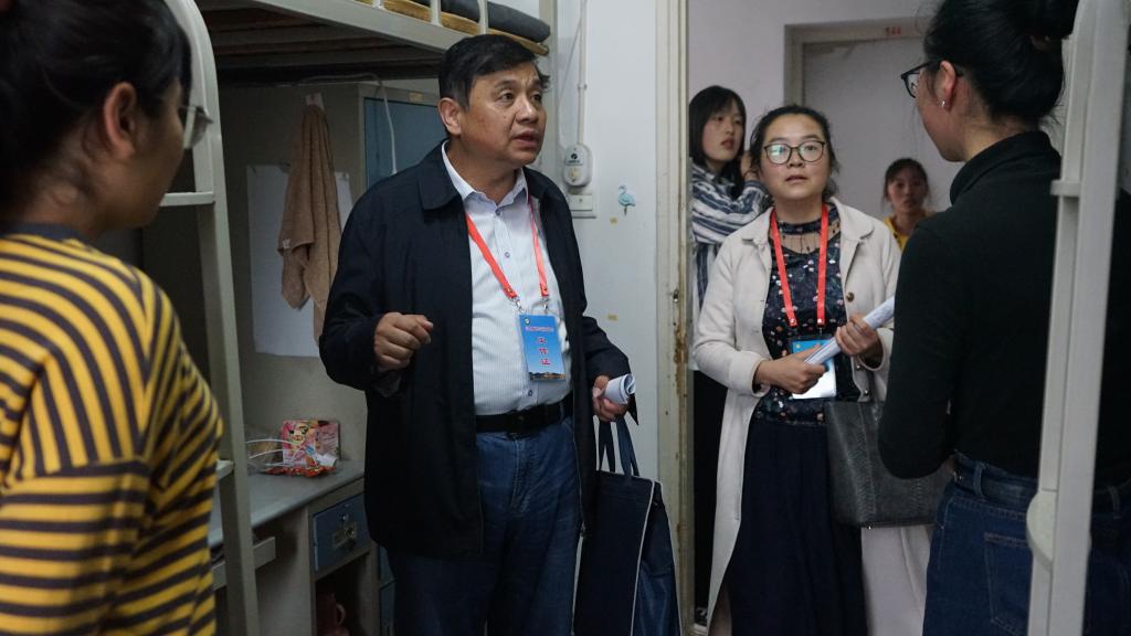 为了解新生在校住宿和生活情况,帮助新生尽快适应老员工活,加强宿舍安全教育。10月10日下午五点,公司党委副书记杨霁虹,2020级专职辅导员李敏和部分员工干部走访新生宿舍。