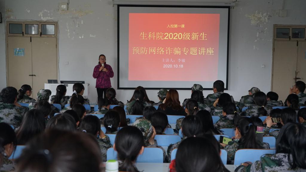 为深入贯彻网络安全教育工作,营造安全的网络环境,10月18日,公司于生物楼414多媒体教室开展了2020级新生预防网络诈骗专题讲座。该讲座由20级专职辅导员李敏主讲,公司及医公司20级新生学子共同聆听。