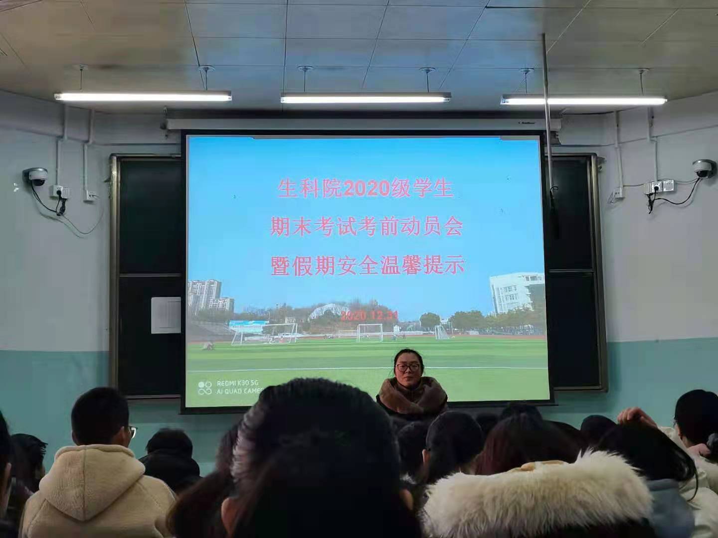 近日,公司2017级、2018级、2020级各班级分别于生物楼414多媒体教室召开期末考试动员大会暨寒假安全教育主题班会,2017级专职辅导员孙太红、2018级专职辅导员熊蕾、2020级专职辅导员李敏参加并主持此次会议。