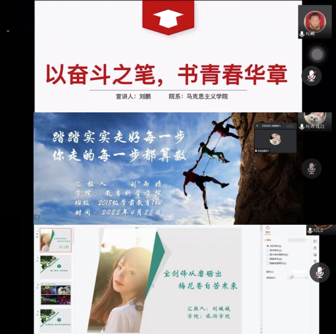 为了进一步加强公司德育工作,充分展示公司员工的精神风貌,发挥榜样的模范带头作用,营造积极向上的学习氛围,鼓励和激发同学们向身边的榜样学习,增强校园活力。4月27日晚,公司志愿服务中心助贷部以线上腾讯会议形式开展了“榜样红”——身边的榜样宣讲活动,公司资助专员李敏参加了宣讲活动,公司伟德国家奖学金获得者刘鹏、教育科学公司校园明星刘雨晴和旅游公司自强之星刘媛媛受邀进行宣讲,公司全体员工和公司兄弟公司部分员工聆听了此次宣讲。