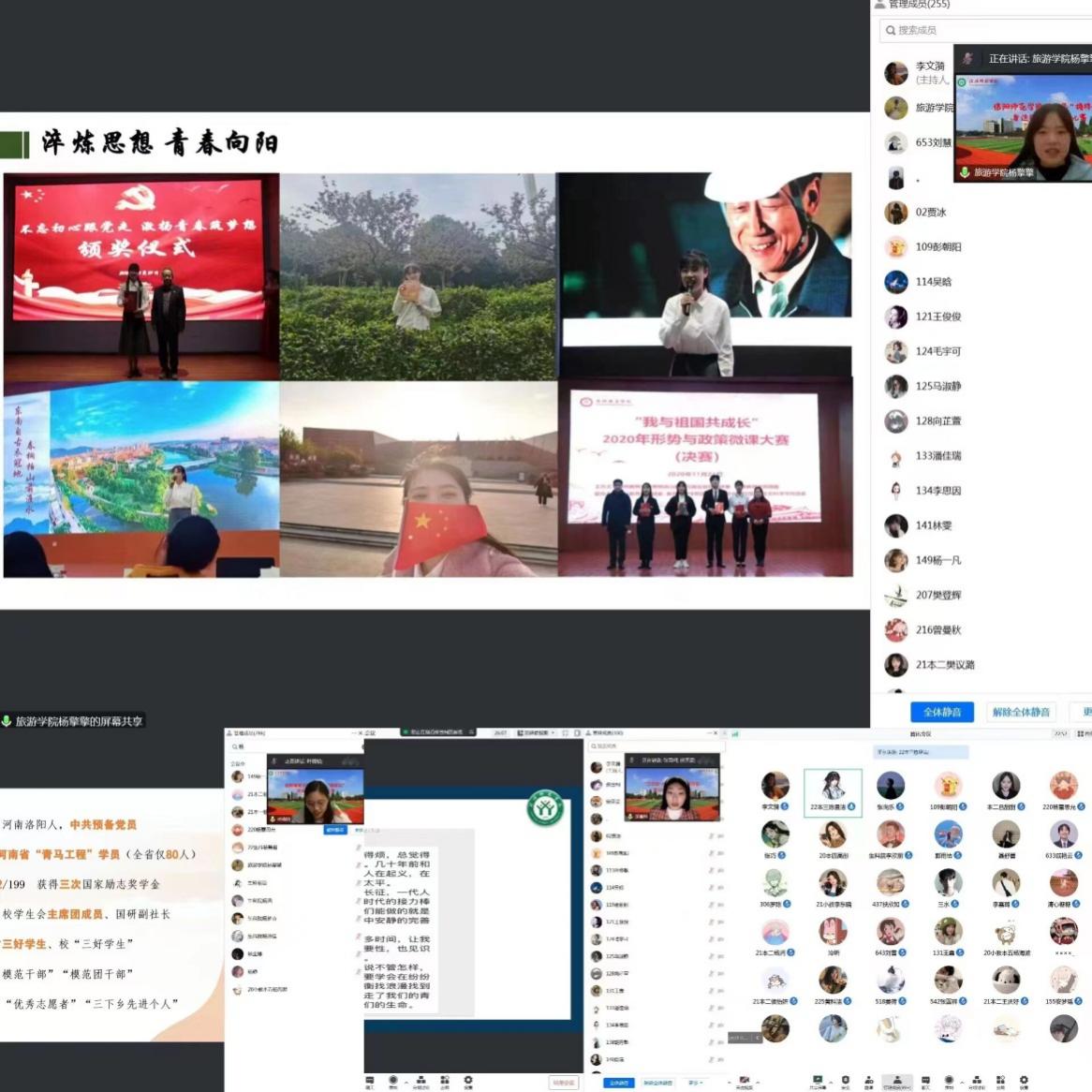 为全面落实国家资助政策,进一步拓展员工资助育人功能,进一步加老员工资助的宣传力度,11月30日晚上7:00,公司与教师教育公司共同举办2022年“榜样红·身边的榜样”宣讲活动。本次活动采用线上腾讯会议的方式进行,由国际教育公司张雪柯、文公司叶璐怡、旅游公司杨擎擎三位宣讲团成员进行宣讲,公司2022级全体员工和教师教育公司部分员工共同聆听宣讲。
