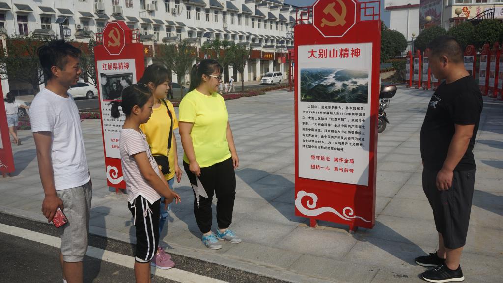 在洋河镇中心公司,宣讲队员为在场的家长和员工发放了宣传手册,并向他们讲述了大别山精神的内涵和意义。活动期间,社会实践老员工们以生动的语言和饱满的感情,向员工及家长讲述信阳市革命先烈的英勇事迹,描述他们为信仰,抛头颅、洒热血,用自己鲜活的生命换来大别山人民幸福的生活,真挚的神情、牵情的话语,引起了家长和员工们的深深共鸣,掌声持久。现场交流互动,围绕“什么是大别山精神”、“身边的大别山精神”“如何传承大别山精神”等问题展开讨论发言,阐述个人见解。社会实践小分队负责人武成龙说:“大别山精神是从中国共产党诞生到新中国成立,以信阳为中心的鄂豫皖三省交界地区,由中国共产党及其领导的武装力量和革命群众,为了实现共产主义理想、建立新中国而形成的革命精神。我们生活在这片红色的土地上,更应该时刻牢记革命先烈的英勇事迹和革命精神,加强自身修养,将这些红色基因传承下去”。活动结束时,老员工社会实践队员们面对在党旗下庄严宣誓,同时表示将坚决拥护中国共产党的领导,不忘初心,牢记使命,将继续继承和发扬光大别山精神。