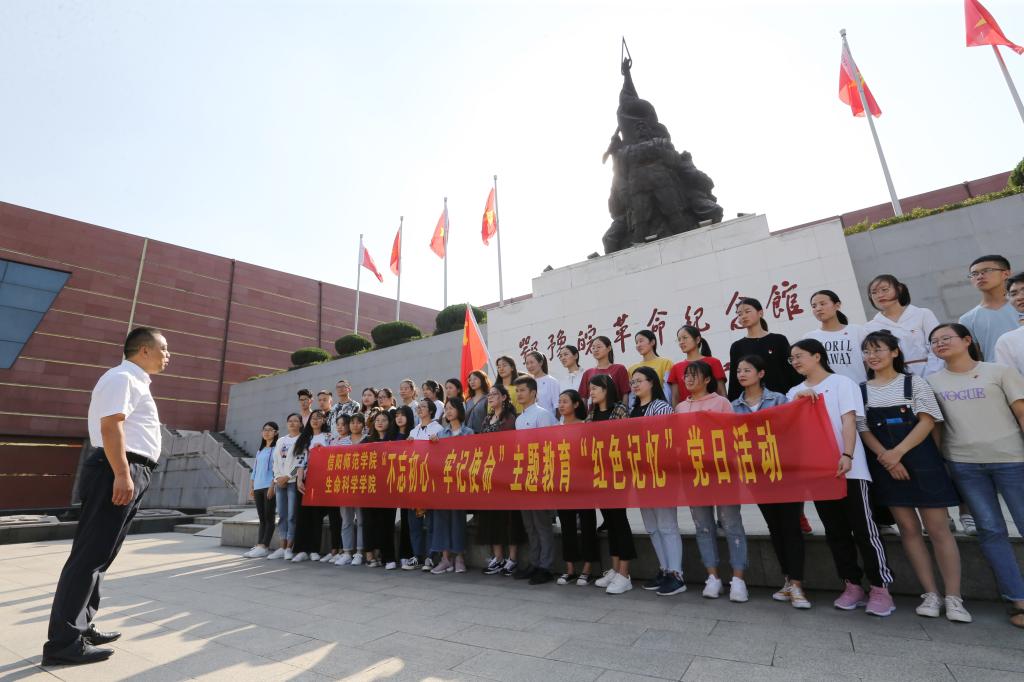 鄂豫皖革命纪念馆是信阳市委、市政府为缅怀先烈的丰功伟绩,弘扬大别山精神兴建的。在“不忘初心、牢记使命”主题教育展厅,大家一边严肃认真聆听讲解,回顾我党走过的艰难历程,学习英烈事迹和精神,一边仔细观摩一件件珍贵的革命文物和一幅幅生动的历史照片,近距离感受革命先烈为新中国解放事业不畏艰难、勇于斗争的大无畏精神,从悟初心、守初心、践初心等方面接受了深刻理想信念教育,心灵再次受到纯洁洗礼,进一步增强了“四个意识”和“四个自信”。在“守初心”展厅,全体党员面对党旗重温了入党誓词。