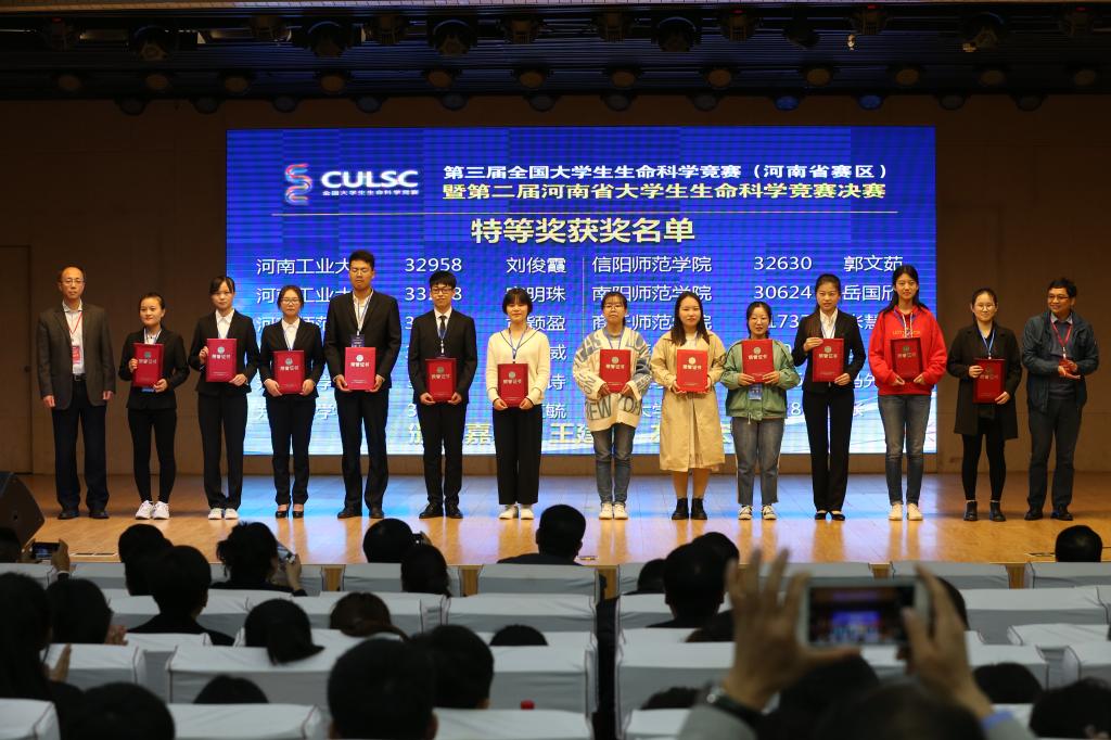 10月27日上午,竞赛闭幕式在理科楼报告厅举行。河南省教育厅高教处处长张水潮,教育部高等公司生物科学类专业教学指导委员会委员、武汉大学研究生院副经理王建波教授,教育部高等公司老员工物学课程教学指导委员会委员、第三届全国老员工生命科学竞赛执委会委员、厦门老员工命科学公司副经理左正宏教授,教育部高等公司生物科学类专业教学指导委员会委员、河南省生物学教学指导委员会副主任、公司党委副书记陈广文教授,公司副董事长、第二届河南省老员工生命科学竞赛组委会主任王文臣等领导出席闭幕式。大赛执委会委员、评委和部分参赛领队及队员共400余人参加了闭幕式。闭幕式由生命科公司经理袁红雨主持。