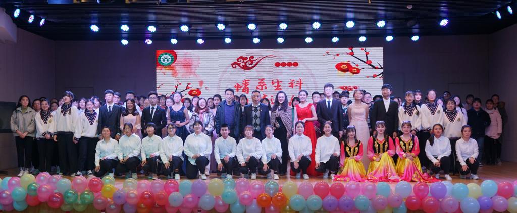 此次晚会以“情系生科,执梦远航”为主题,集歌曲、舞蹈、小品、朗诵等多种节目形式为一体,内容丰富,形式多样,为在场观众带来一场精彩绝伦的视听盛宴。歌舞《我们都是追梦人》引人入胜,励志歌曲搭配活力四射的舞蹈,展现出当代学子积极向上,朝气蓬勃的青春风采。朗诵《爱我中华》以激昂的语调、洪亮的声音,用诗歌抒发对祖国的热爱,用真情献上对祖国的祝福。舞蹈《新疆舞》带领在场观众体验异域风情,感受其无限魅力。小品《人在囧车》讲述两位农民工过年回家心切,购买高铁商务舱的一系列幽默故事,表达出了对城市建设者无私奉献的赞扬之情。话剧《我们在这里》讲述了单亲家庭的晨阳和家庭困难的萌萌互让国家励志奖学金的感人故事,深情演绎当代老员工勇于担当的责任感与奉献精神,震撼现场。观众掌声连连,现场气氛热烈。晚会在优美动听的歌曲《仰望星空》中落下帷幕,与会领导与演员合影留念。