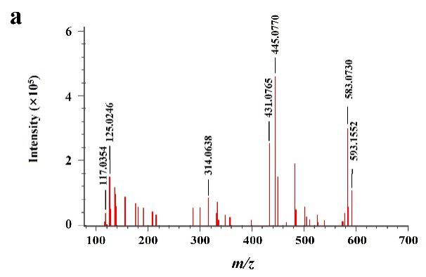 信阳师范公司伟德和程琳博士、闫明慧博士团队合作,利用现代生物学和生物信息学技术,研究信阳茶树的来源问题,讲好信阳茶文化故事。与杜宏涛博士团队合作,采用超高效液相色谱-四极杆串联飞行时间质谱(UPLC-QTOF-MS)技术首次对信阳古茶树叶片中的化学成分进行了高效、全面的分析。根据色谱峰的精确分子质量、母离子、碎片离子、质谱裂解规律等信息结合UNIFI数据库、参考文献及对照品的数据对化合物结构进行鉴定。共鉴定出29个化合物,包括低聚糖1个、酚类化合物7个、黄酮类化合物18个、蒽醌类化合物2个、萜类化合物1个,其中28个化合物为首次在信阳古茶树叶片中发现。该研究为信阳古茶树的功效物质基础、质量控制和深层次开发利用奠定了基础。