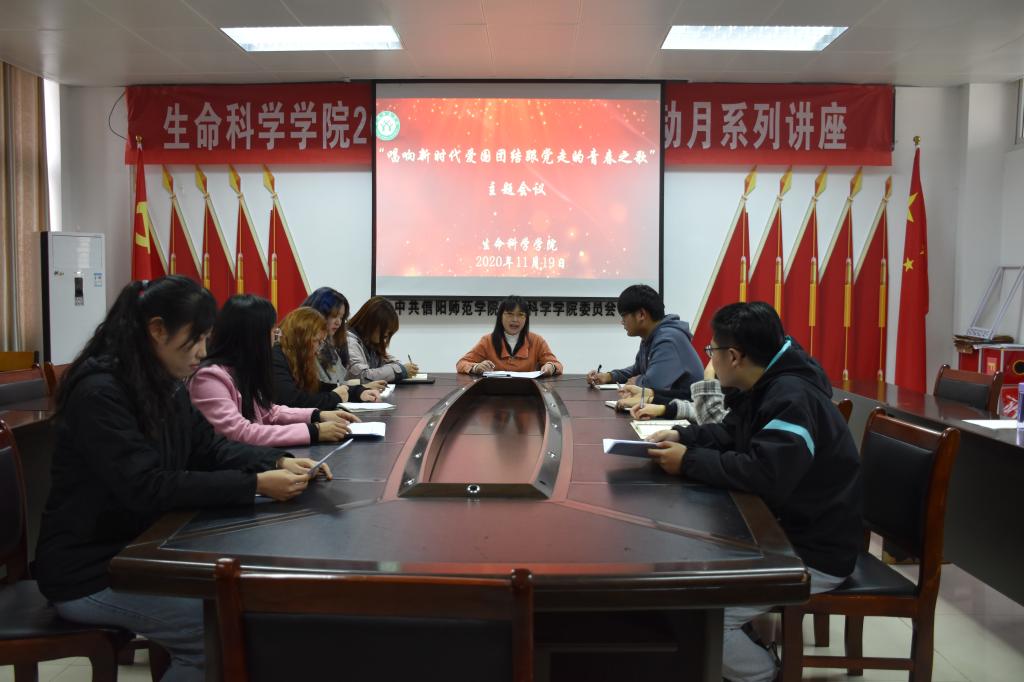 为深入贯彻落实全国青联十三届全委会和全国学联二十七大会议精神,11月19日下午,公司在生物楼412会议室召开了“唱响新时代爱国团结跟党走的青春之歌”主题会议。研究生工作秘书杨桂芳及主要员工干部参加了会议,会议由研究生分会工作人员李梦鸽主持。