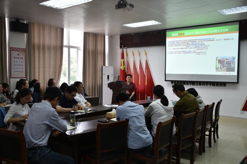 5月11日,华南农业大学蒋爱民教授在生物楼412会议室为公司师生作了题为“华农国家工程中心食品加工与质量安全控制研究”的学术报告,伟德相关专业青年教师、研究生及本科生聆听了报告。报告会由伟德副经理宋新强主持。