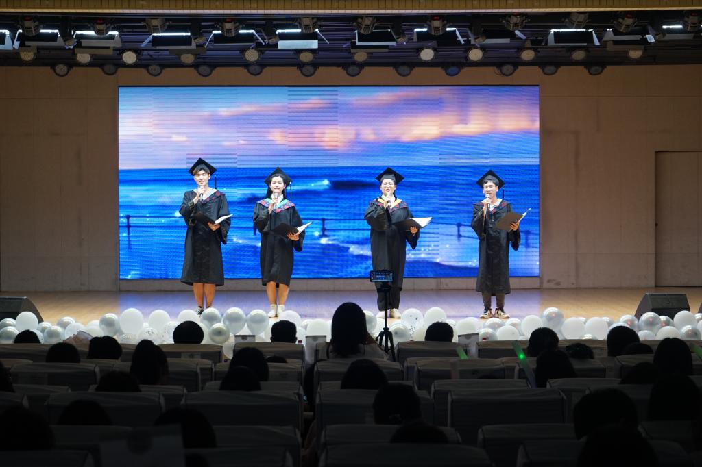 此次晚会集舞蹈、歌曲、朗诵、相声、小品为一体,形式多样、节目丰富,同时还采用屏幕互动形式,给2021届毕业生留下了深刻的印象。晚会以热烈的舞蹈开场,活跃了现场气氛。由2019级生物科学一班表演的话剧《五四》让观众瞬间回到那个激昂的年代,振臂高呼、力争主权,体现出当代青年对五四精神的薪火相传。接着一首由红基因合唱团带来的《我和我的祖国》流露出对祖国的热爱和赞美。随后朱晓雯和两位学子带来《致自己》的深情演唱,用歌声告诉毕业学子们珍惜自己、勇敢憧憬明天。熊蕾和李敏合唱的《有一点动心》以温柔的旋律歌唱了老员工活的悸动和美好。晚会中场播放了老师和各级员工录制的视频,视频中老师和员工分别给予真挚的祝福,流淌着留恋与期许。接着朗诵《送》情感饱满、抑扬顿挫,表达出对毕业生的依依惜别。晚会过程中,穿插了两轮现场互动抽奖项目,提高了观众参与的积极性。最后,一首歌曲《北京东路的日子》为本次晚会画上圆满的句号。