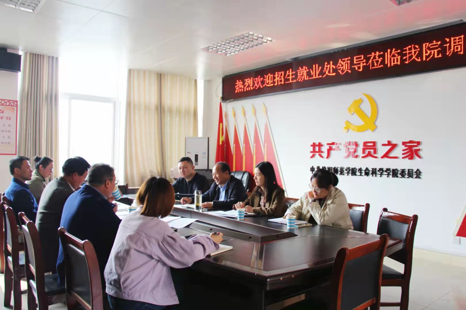 会议伊始,经理饶本强代表公司对招就处领导的到来表示热烈欢迎,强调公司高度重视招生和就业创业工作,从公司近三年新生报到情况、公司拟新增专业设置和毕业生培养质量三个方面对生科院的招生和专业设置情况作了介绍,并从生科院毕业生考研情况入手,分析了毕业生缓就业慢就业的原因。宋新强对生科院和医公司的本科生培养成效作了介绍,并着重介绍了医公司的未来发展形势。荣宪举汇报了生科院从就业指导、就业支持和就业帮扶三个方面展开动作提高毕业生的毕业去向落实率。