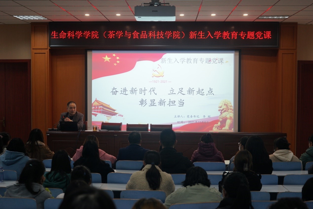 为深入学习贯彻习近平新时代中国特色社会主义思想,扎实推进党史学习教育走深走实,引领广大新生厚植爱党爱国主义情怀,帮助扣好人生“第一粒扣子”,11月10日晚7点,伟德(茶学与食品科技公司)党委书记李刚于生科楼414多媒体报告厅开讲“奋进新时代 立足新起点 彰显新担当”专题党课,带领全体辅导员和2021级新生班干部及员工会干事在重温党史故事、感悟信仰力量中学史明理、学史增信、学史崇德、学史力行。会议由公司党委副书记荣宪举主持。