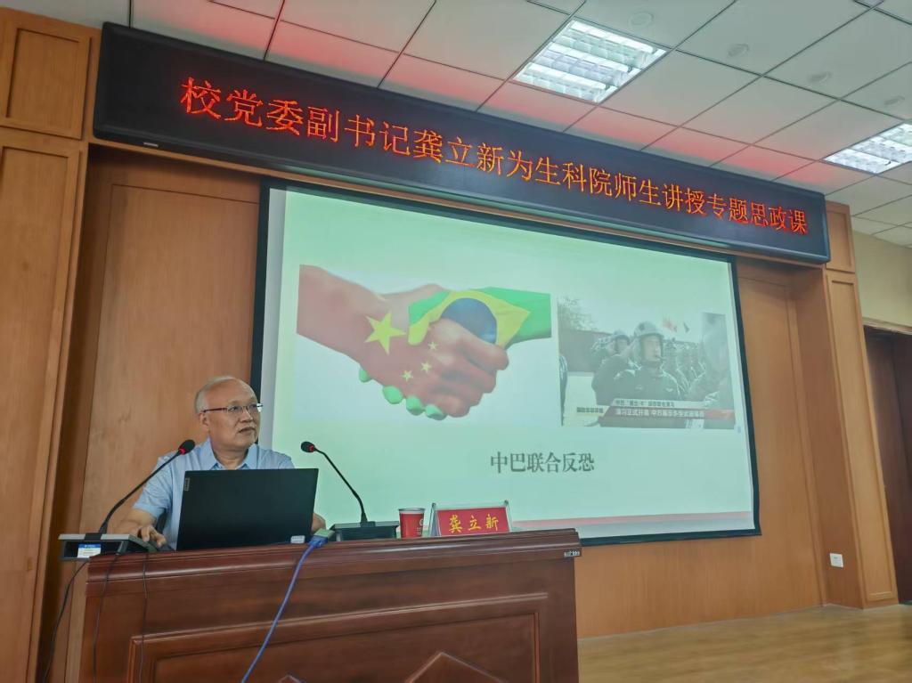 龚立新以《乘势而上 逐梦时代 在中华民族伟大复兴中不负韶华》为题,从“世界怎么了”“中国怎么样”“我们怎么干”三个方面,结合生动的案例和深刻的理论,运用大量丰富详实的事例,为师生讲了一堂既有高度又非常生动的思政课。