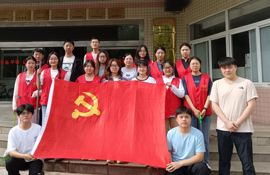 4月19日下午,公司党员发展对象在专职组织员张博老师的带领下开展环境卫生清理志愿服务活动。他们身穿红色志愿者马甲,手持清洁工具,对广场、道路及生科楼414教室进行了全面清扫,展现了新时代青年学子的责任与担当。