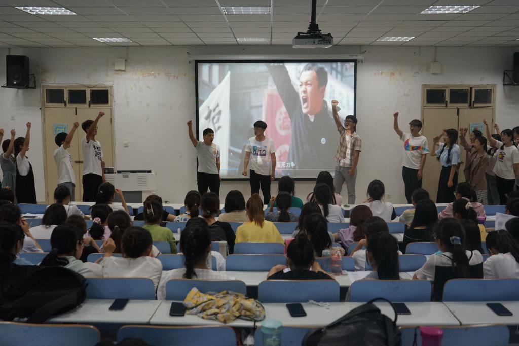 活动伊始,2019级生物科学一班团支书王欣源带领大家重温五四运动,向大家解读五四精神的内涵。接着,2019级生物科学一班班长李可为在场学子讲解赵一曼的抗日故事。随后,由班级各个团小组成员带来歌曲《我和我的祖国》、《明天会更好》、《精忠报国》,诗朗诵《纪念“五四”》、《少年中国说》、《青春乐章》、《我们》,话剧《五四》等丰富多彩的才艺展示。活动期间,学子们气势昂扬,热情洋溢,充分展示了公司学子积极向上的精神风貌。活动最后,熊蕾对此次活动做出总结,她指出,广大青年应当弘扬五四爱国精神,牢记使命,树立远大理想,努力实现自己的价值。