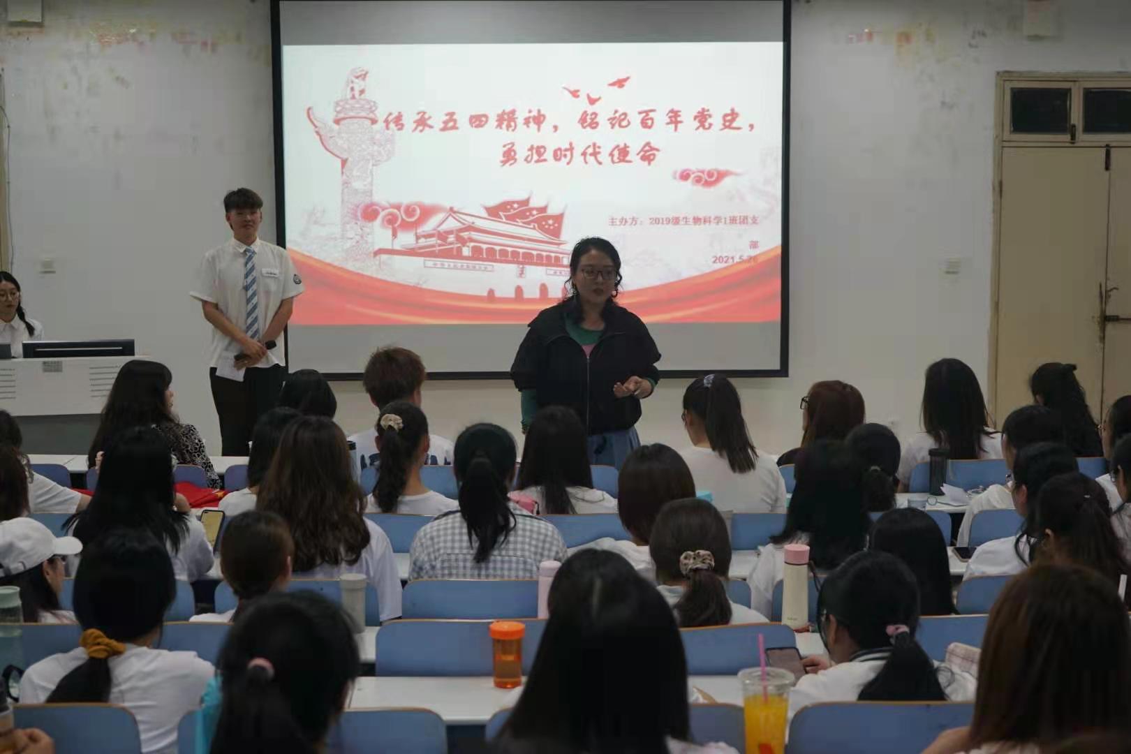 根据公司共青团组织建设发展的需要,进一步推动团学建设,5月26日,公司于生物楼414多媒体教室召开“传承五四精神,铭记百年党史,勇担时代使命”主题团课活动,院团委书记熊蕾、团委副书记康菡、化学与化工公司团委副书记邓雪婉、朱宛霞、物理与电子工程公司团委副书记李诗吟、建筑与土木工程公司团委副书记郭师慧、院员工会主席乔群龙、员工会副主席路孟戈和2019级生物科学一班团支部成员出席此次会议。