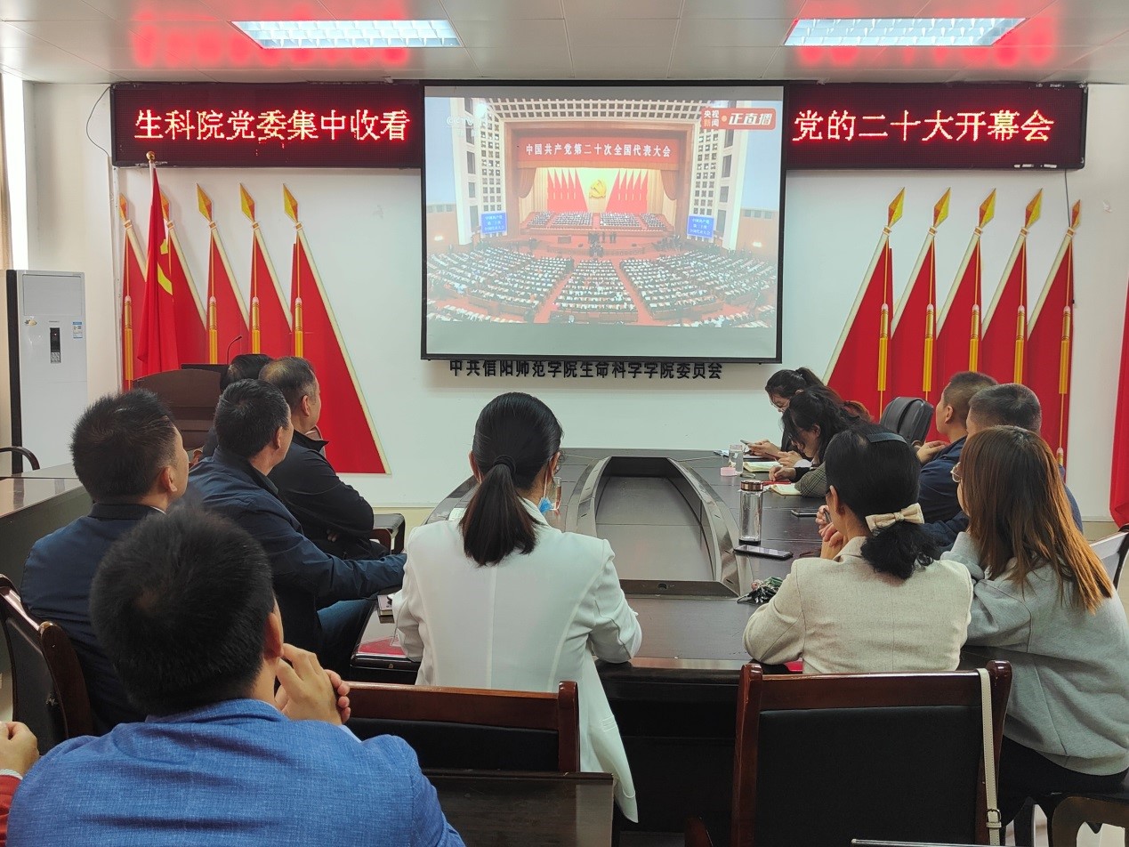 2022年10月16日上午10时,中国共产党第二十次全国代表大会在北京人民大会堂隆重召开,习近平总书记代表十九届中央委员会向大会作报告。伟德全体班子成员带领党支部书记、系主任、全体科级干部、全体辅导员于10月16日上午10点在生物楼412会议室集中收看开幕会现场直播盛况,认真聆听习近平总书记代表十九届中央委员会向大会所作的报告。为组织好党的二十大直播收看,伟德党委高度重视,积极组织全院师生通过电视、电脑、手机等渠道实时收看直播大会。